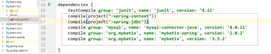 创建完成后打开build.gradle, 引入依赖jar,格式如下图