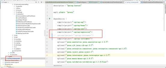 找到对应的模块下修改optional(project(":spring-instrument"))