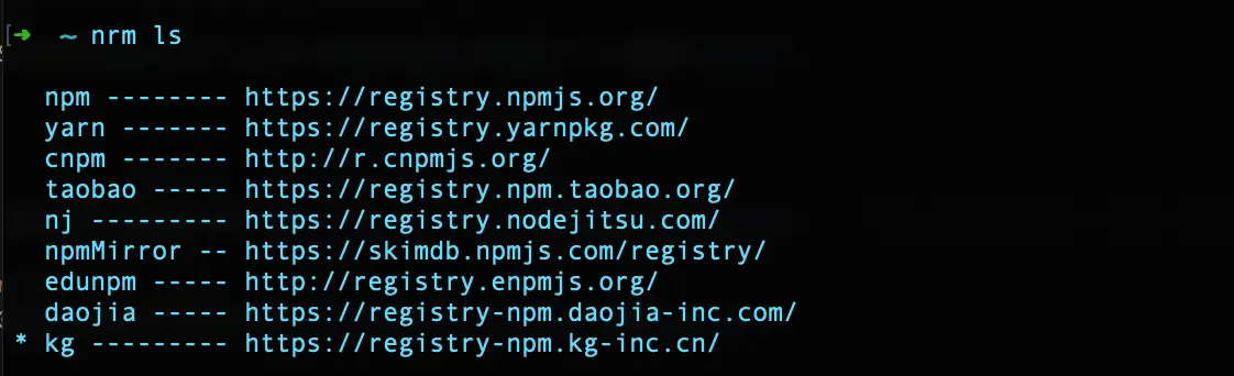 nrm有一些默认配置,用nrm ls命令查看默认配置,带*号即为当前使用的配置