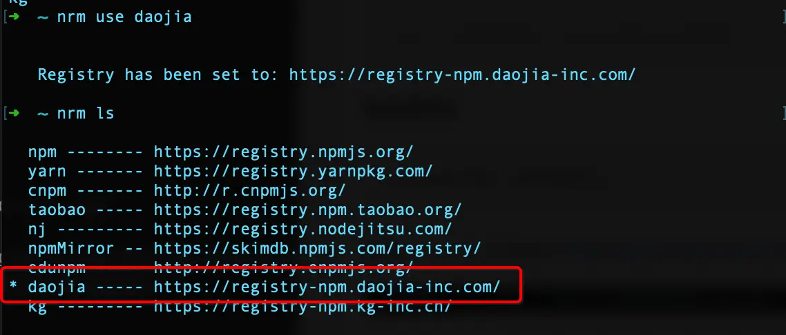 例如:nrm add daojia rigistry.npm.daojia-inc.com