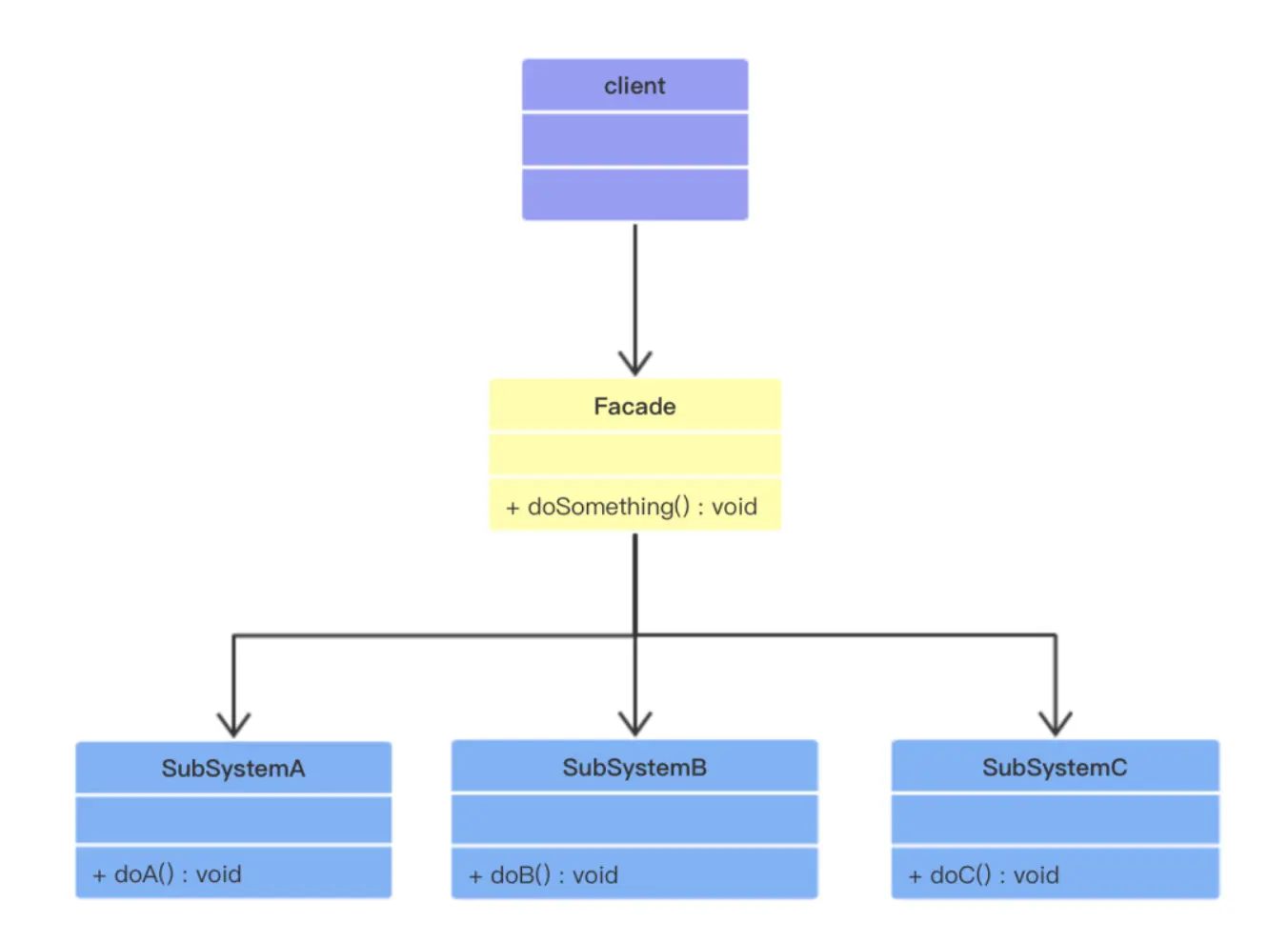 一个系统的功能越来越强,子系统(子模块)就越来越多,因此客户端如果挨个去调用子系统就会变的复杂,还需要对子系统有较深的了解,如果功能发生改变的时候,客户端也需要改变,违背了开闭原则以及迪米特法则,所以我们可以为子系统提供一个共同的对外接口。客户端可以直接和这个外观对象沟通。