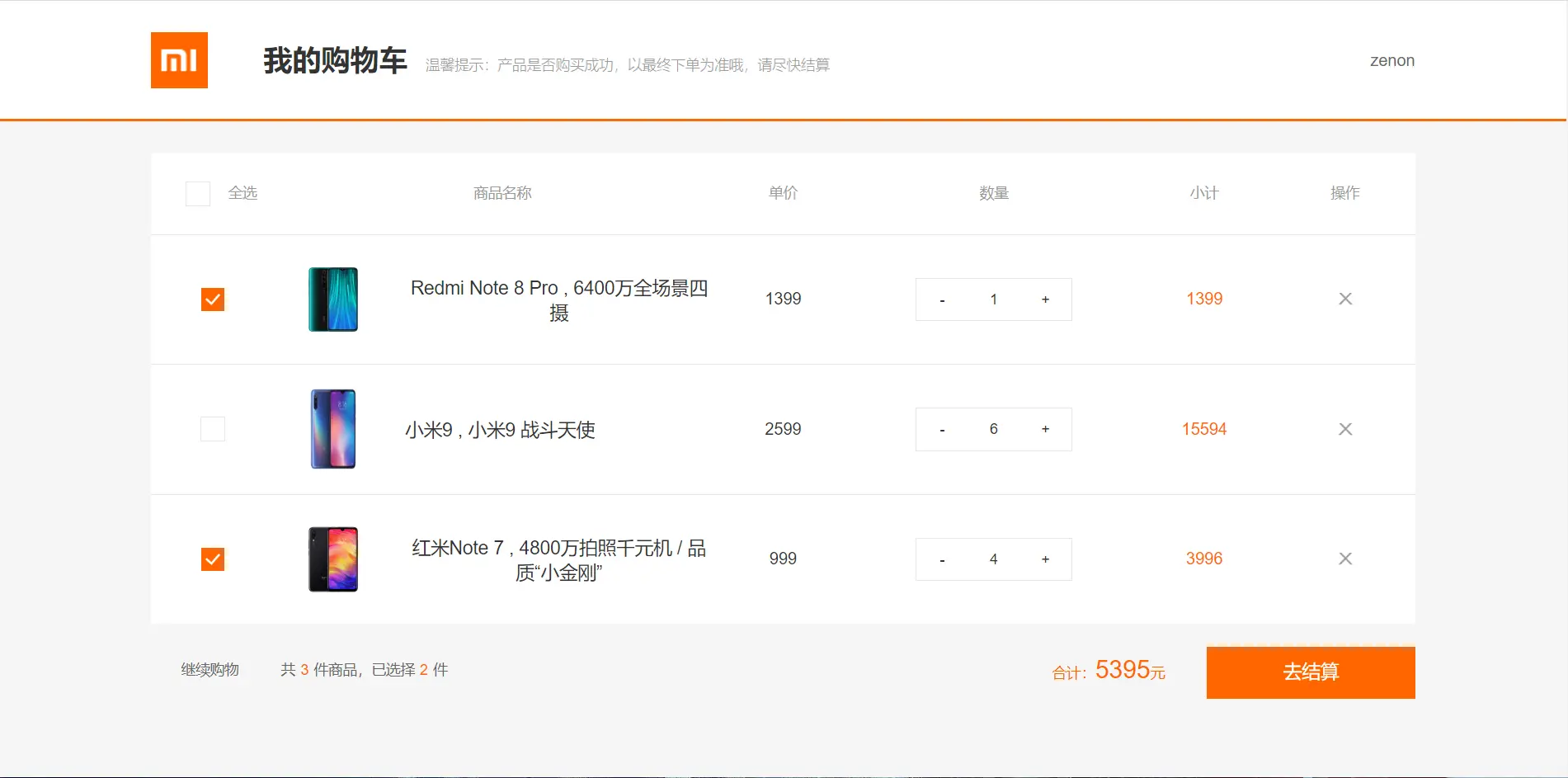购物车头部组件以及购物车所有功能的动态交互实现。