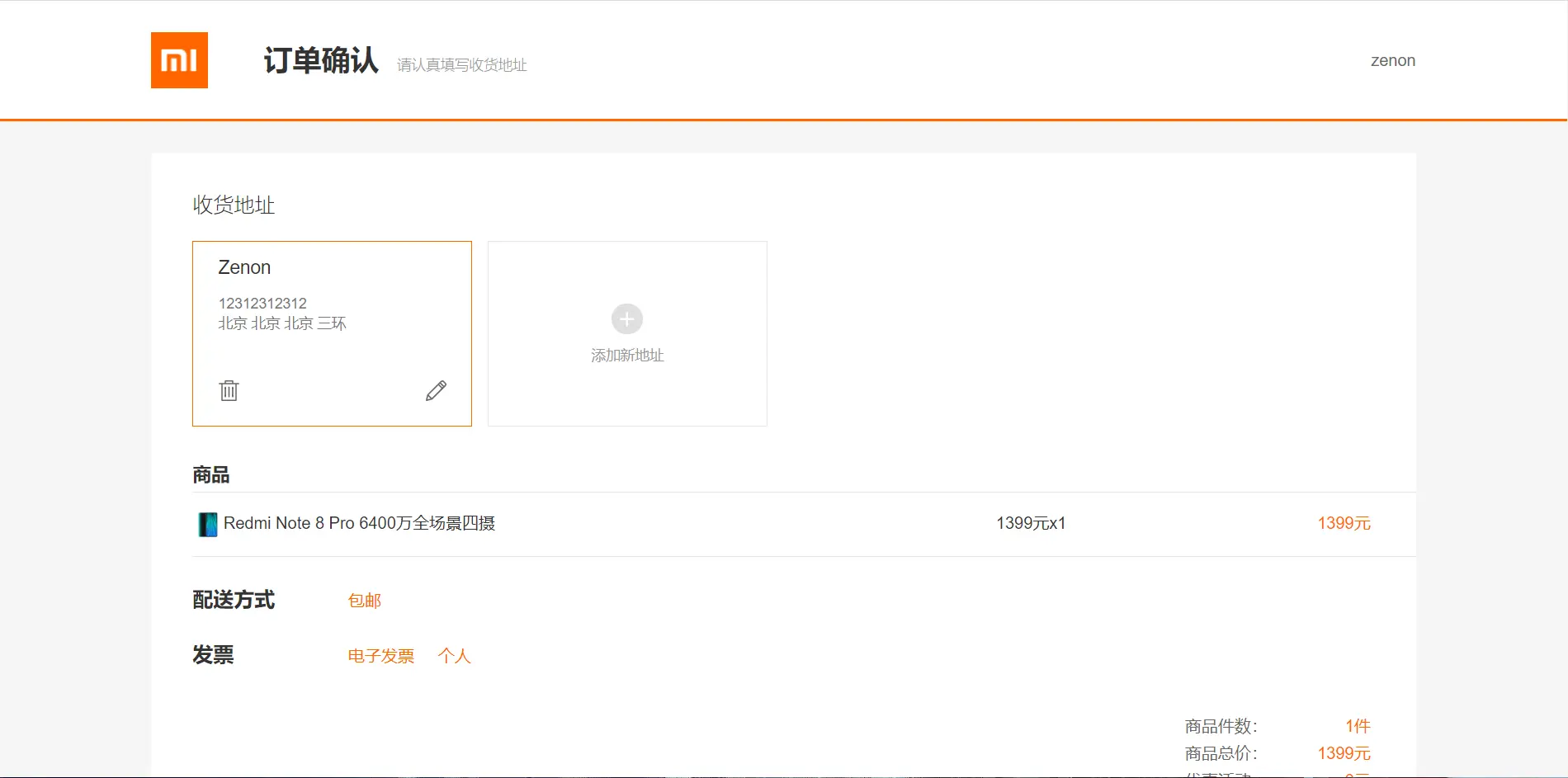 订单确认页面中部分静态模块实现以及接口功能实现。