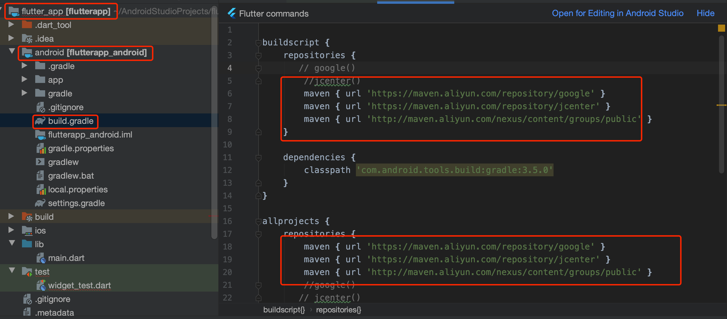 修改内容:找到buildscript 和allprojects 将里面的: