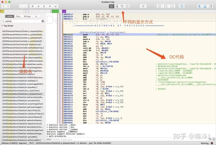 Hopper 是将二进制文件转为汇编语言和OC语言的工具。功能很强大,但看起来比较难,需要多次使用才能看懂里面的代码逻辑。这个软件也是收费的。其中二进制文件是在对应的app文件内,右键显示包内容,从里面可以看到一个于与app同名的一个二进制文件,就是它了,如快看的app文件是Kuaikan.app,它的二进制文件就是Kuaikan。