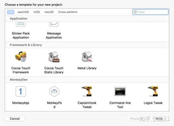 最后一个工具是AloneMonkey这是最重要的一个工具,很好用,把各种越狱需要到的工具都集成到了xcode里面。集成了theos+Tweaks+Reveal.framework +Cycript +class-dump+CaptainHook。它的作用是用来动态HOOK 应用中的函数,我们所有的HOOK逻辑都在这个创建的工程里面写,以及配置Reveal和Cycript。下面说一下AloneMonkey的安装方法: