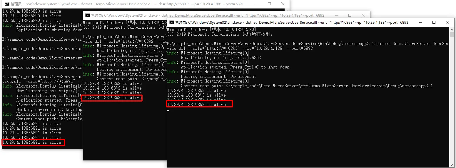 Consul是一种服务网格解决方案,提供具有服务发现,健康检查,Key/Value存储,多数据中心等功能。 在内网101启动Consul服务,这里为了测试,直接在本地将用户服务实例分别在三个端口启动起来,实际生产中这些服务可能部署在不同的机房不同的机器,他们之间组成一个服务的集群,服务提供一个心跳检测的方法,用于consul定时检测服务实例是否健康,启动时在consul中进行一次注册,这个就是经常说的‘服务注册与发现’中的服务注册,三个服务实例截图如下