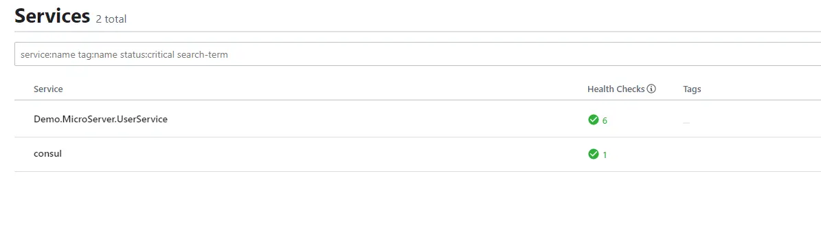 注册完成之后打开consul的ui界面可以看到,列表中存在多出一个用户服务的集群组名称:Demo.MicroServer.UserService,如图