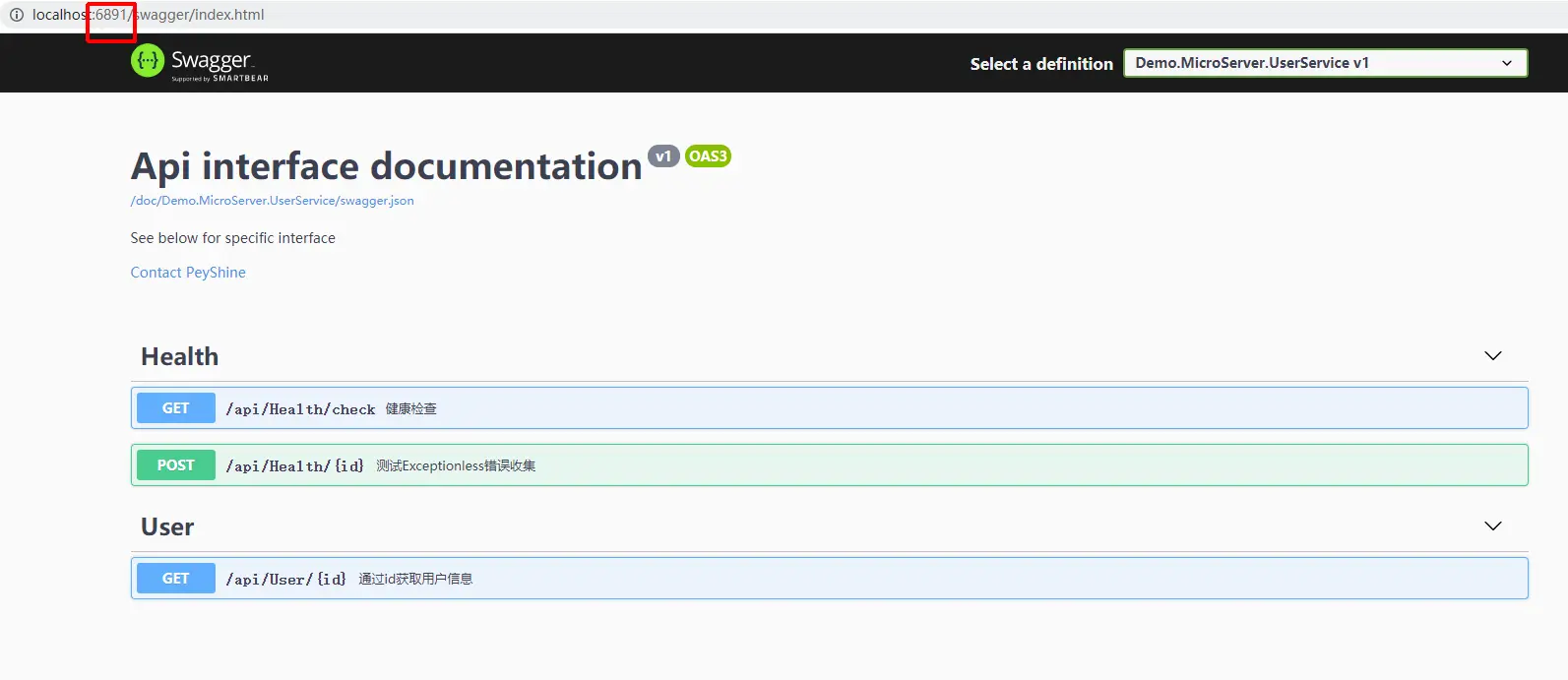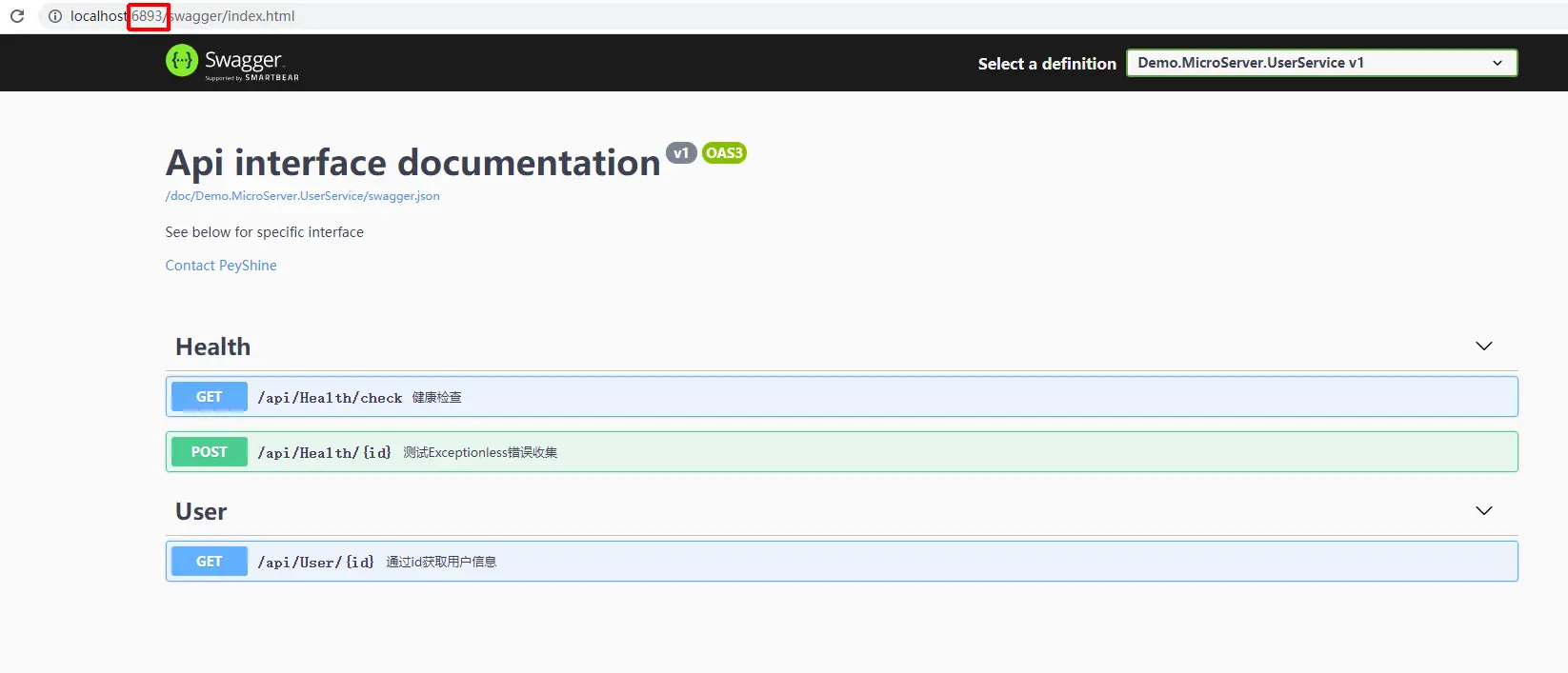 因为三个服务实例是同样一份代码,所以可以看到打开三个端口的swagger地址,看到的接口信息完全一致。