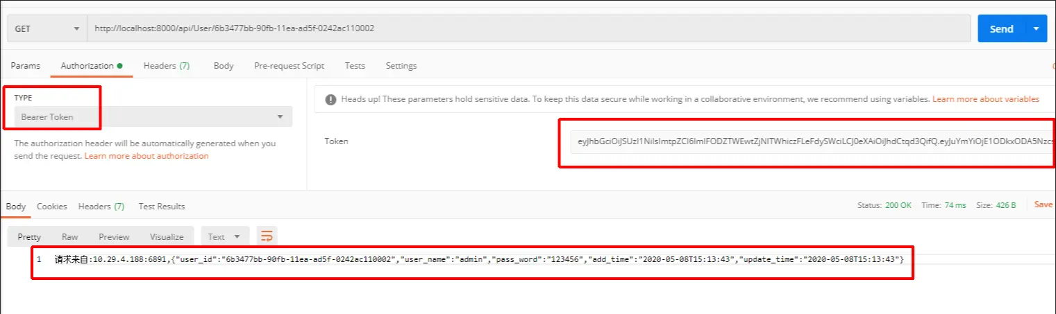拿到token后,带着token再通过网关请求相同的api资源,可以看到正确拿到想要的资源。