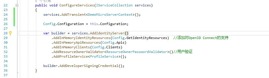 之所有将认证授权放在最后,因为没有这个前面的流程也是可以跑通的,测试的时候如果觉得这部分测试麻烦可以先注释掉,流程跑通后再来集成这个,这个东西的用法还是很多的,这里将IdentityServer4集成到api 网关当中来完成统一的认证鉴权。 在identityserver4项目中分别实现以下几个类