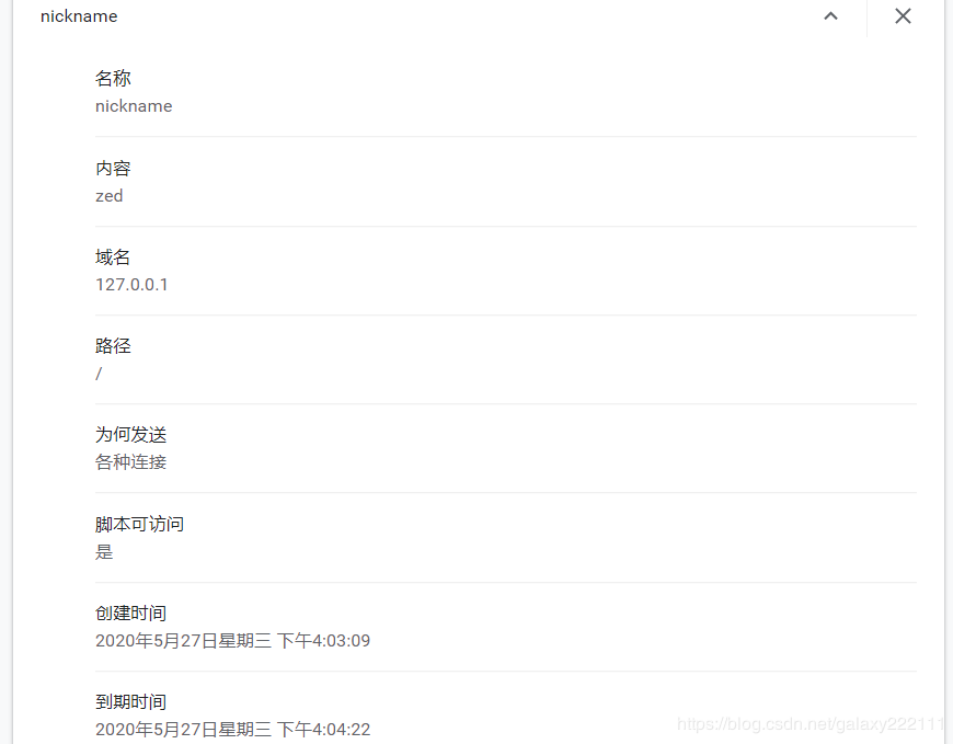 document.cookie = 'nickname = zed' //打开浏览器查看cookie