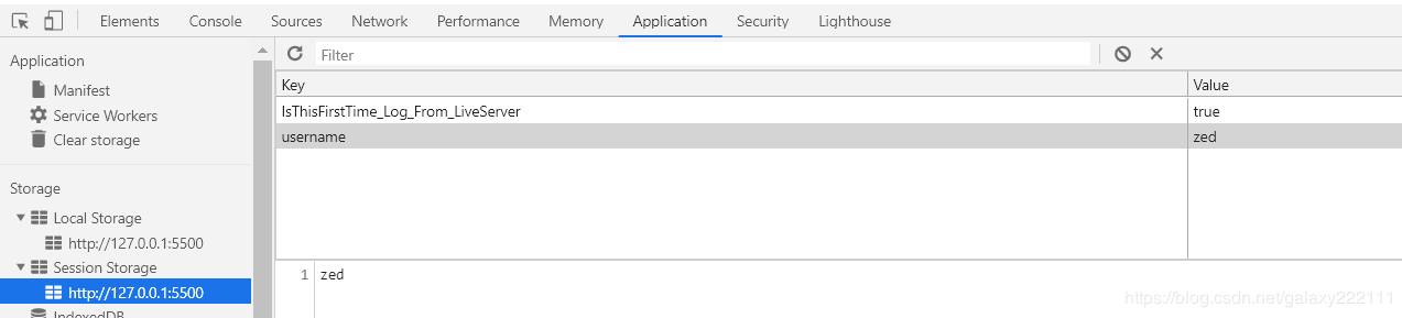 console.log(sessionStorage.getItem('username','zed')); 然后打开 控制台可查看到缓存