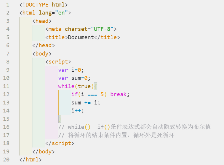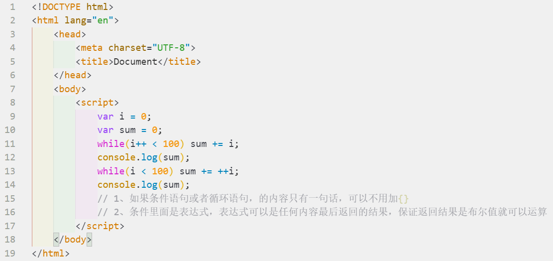2, 表达式可以是常量,变量或者其他表达式,该表达式会被强制转换为boolean类型,可以理解表达式就是循环的条件,