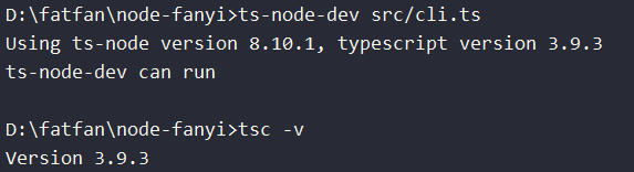 node_fanyi目录下 创建src/cli.ts并写入如下代码console.log("ts-node-dev can run") -