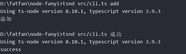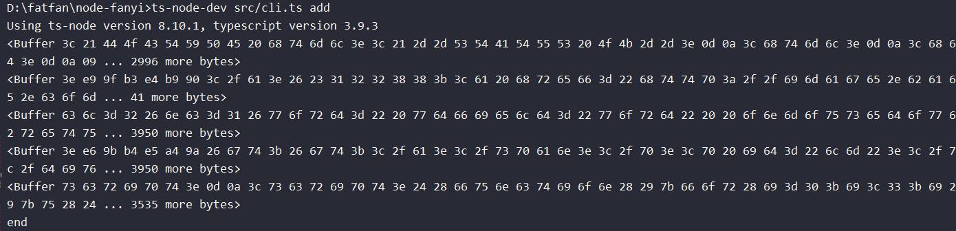 命令行运行 ts-node-dev src/cli.ts add,正确运行,会打印出 chunk end