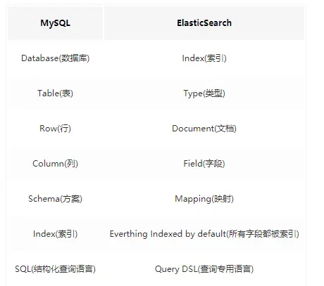 在进行下一步之前,需要先来理解 Elasticsearch 中的几个关键概念,比如说什么是索引,什么是类型,什么是文档等等。Elasticsearch 既然是一个数据引擎,它里面的一些概念就和 MySQL 有一定的关系。