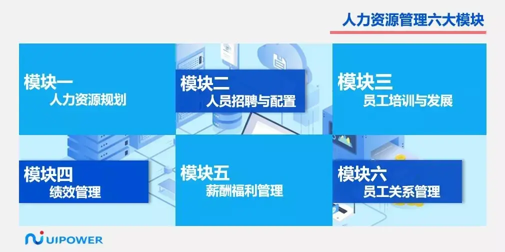 人力资源管理六大模块是基于企业人力资源管理工作所涵盖的不同职能进行划分,人力资源按职能分工管理模式覆盖企业从选人、育人、用人及留人等整个人力资源管理体系。人力资源领域聚焦RPA