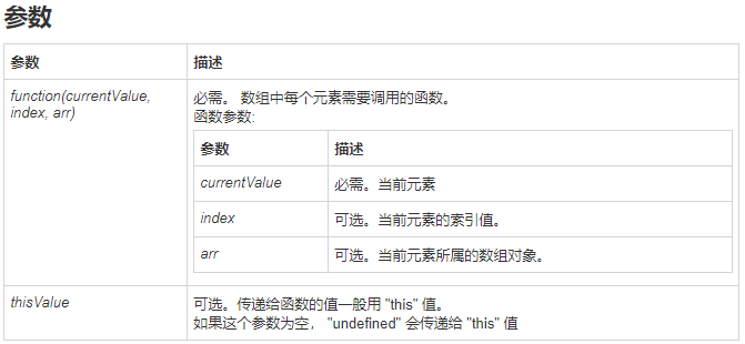 语法:array.every(function(currentValue,index,arr){}, thisValue)