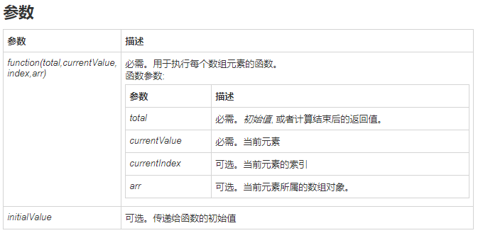 语法:array.reduce(function(total, currentValue, currentIndex, arr){}, initialValue)
