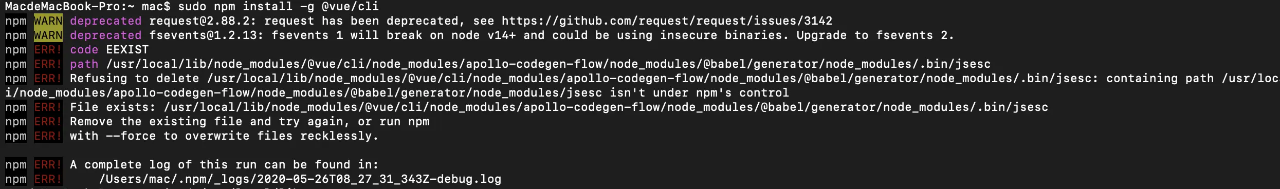 接下来升级vue-cli,先npm uninstall vue-cli -g 卸载,之后再npm install -g @vue/cli安装,此时我还是安装失败