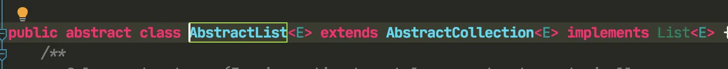 接口中全是抽象方法,抽象类中可以有抽象方法,可以有具体实现,利用这一点让AbstractList是实现接口中一些通用方法,而具体类ArrayList继承AbstractList拿到一些通用的方法,实现自己的一些特有方法,这样代码简洁,继承结构最底层的类中通用的方法都抽取出来,减少重复代码,一般情况下一个类上面还有一个抽象类,就是这个作用