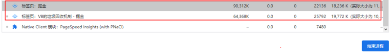 不过如果我们分别打开这两个标签页,比如先打开掘金的标签页,然后再打开文章的标签页,这时候我们可以看到这两个标签页分别使用了两个不同的渲染进程。