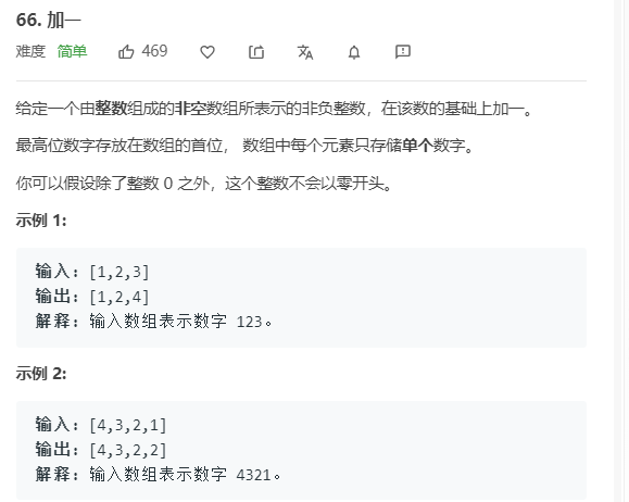 - 只有当原数组组成的数字为9,99,999,...时,加一后需要进位,同时结果数组尺寸加一