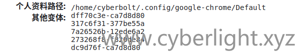 图中所示,我的个人资料路径为 /home/cyberbolt/.config/google-chrome/Default (Windows和Mac路径不同,也在这里查询即可)