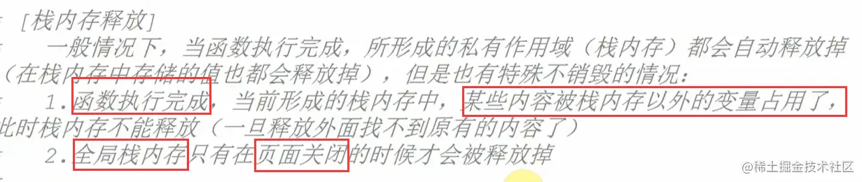 一个函数执行的时候也形成了栈内存,它什么时候销毁??