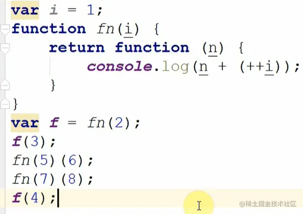 var f=fn(2) ;//=>先把FN执行(传递实参2),把FN执行的返回结果(RETURN后面