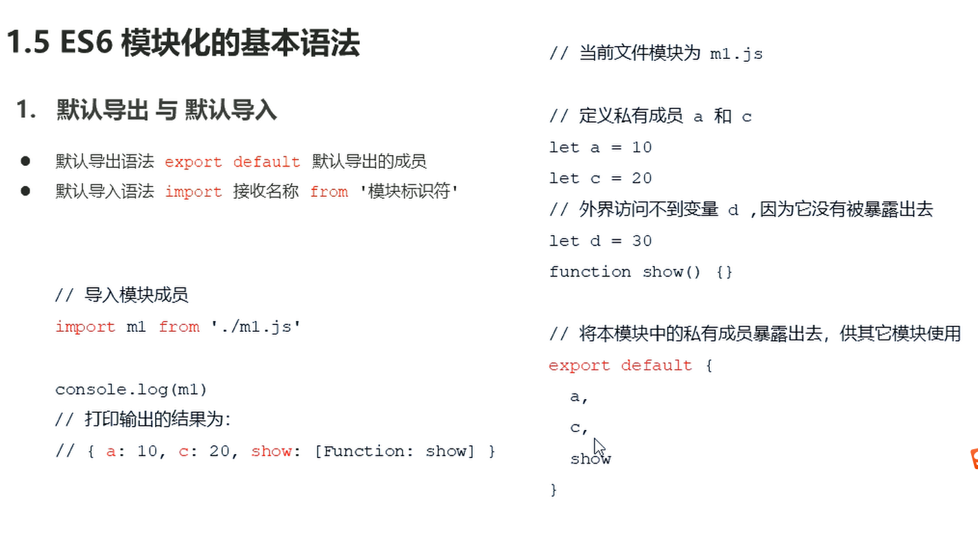 // 默认导出 也就是说导出的m1.js不包括 按需导出的东西