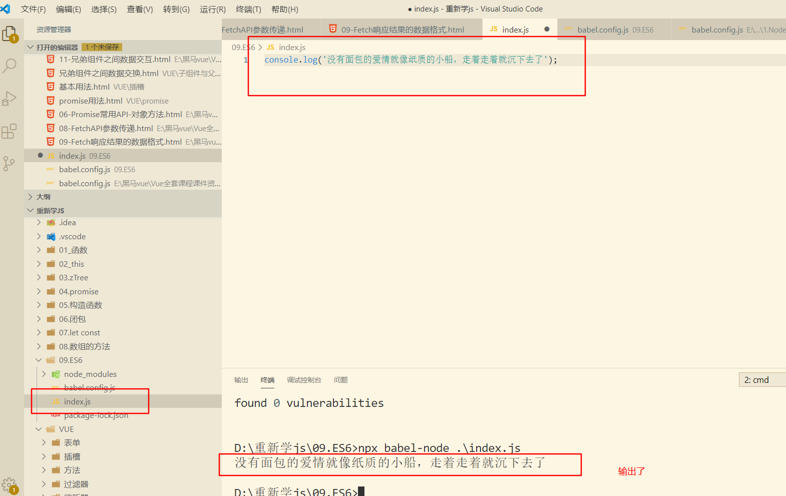 console.log('没有面包的爱情就像纸质的小船,走着走着就沉下去了');