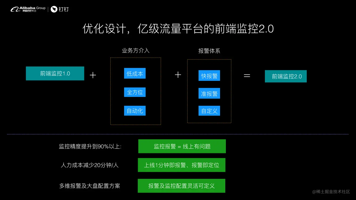 接下来我会讲一下,关于钉钉前端监控,我们是如何对系统进行演进,拿到一个不错的结果。