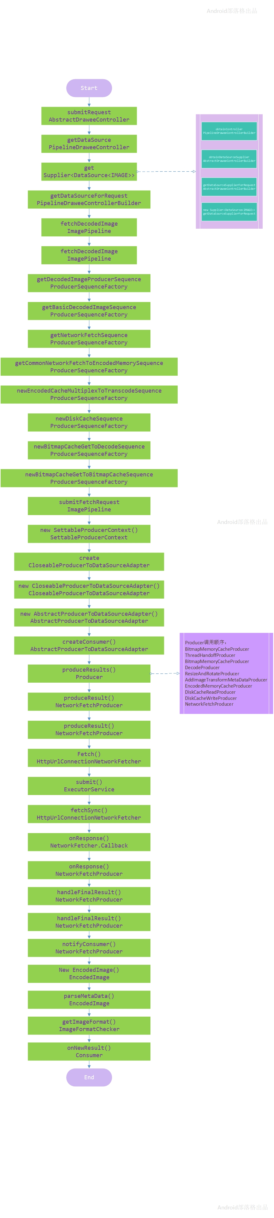 至此生成一个编码后的图片对象的任务算是完成了,主要是将CloseableReference对象封装到EncodedImage对象中然后往上传递数据。