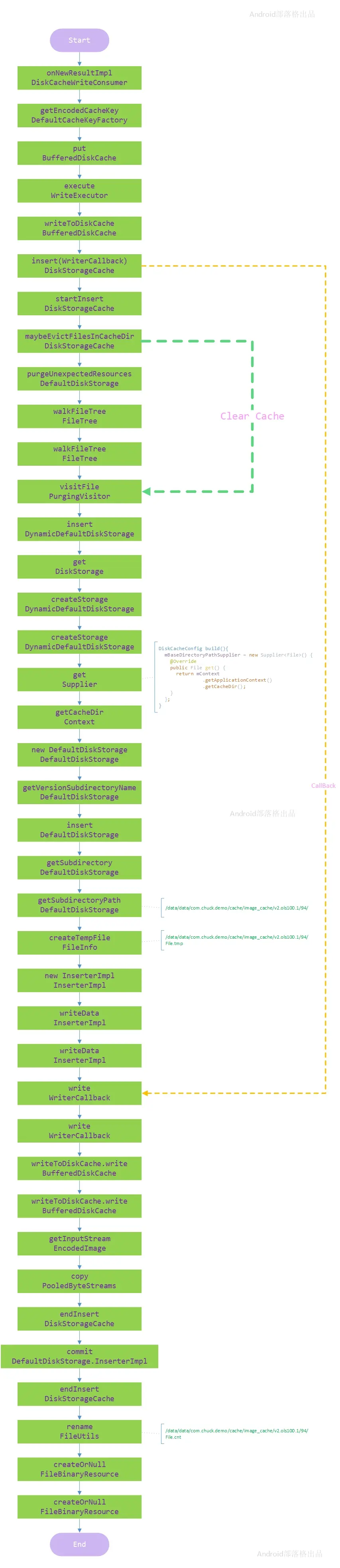 在所有数据都写入完毕之后,在DiskStorageCache类的startInsert方法中的mStorage.insert方法调用之前,还调用了maybeEvictFilesInCacheDir方法,主要做一些缓存空间的控制工作: