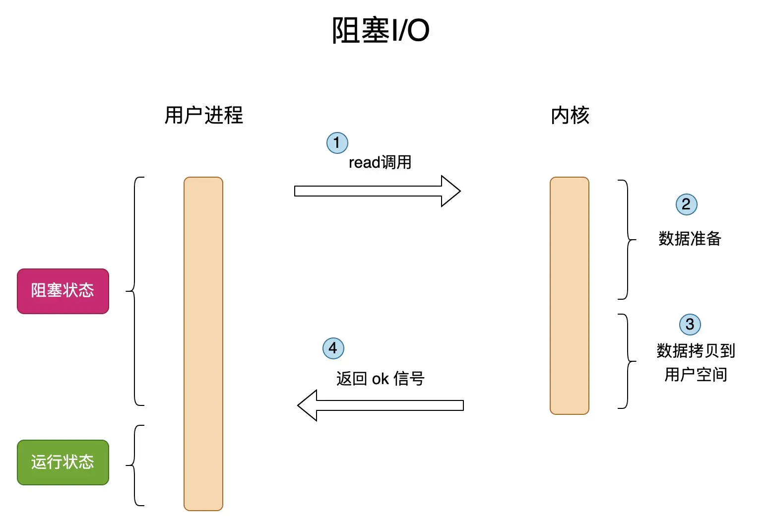 不同的是,「阻塞 I/O」在数据准备阶段和从内核空间拷贝到用户空间阶段都会阻塞,「非阻塞 I/O」只有在拷贝阶段会阻塞