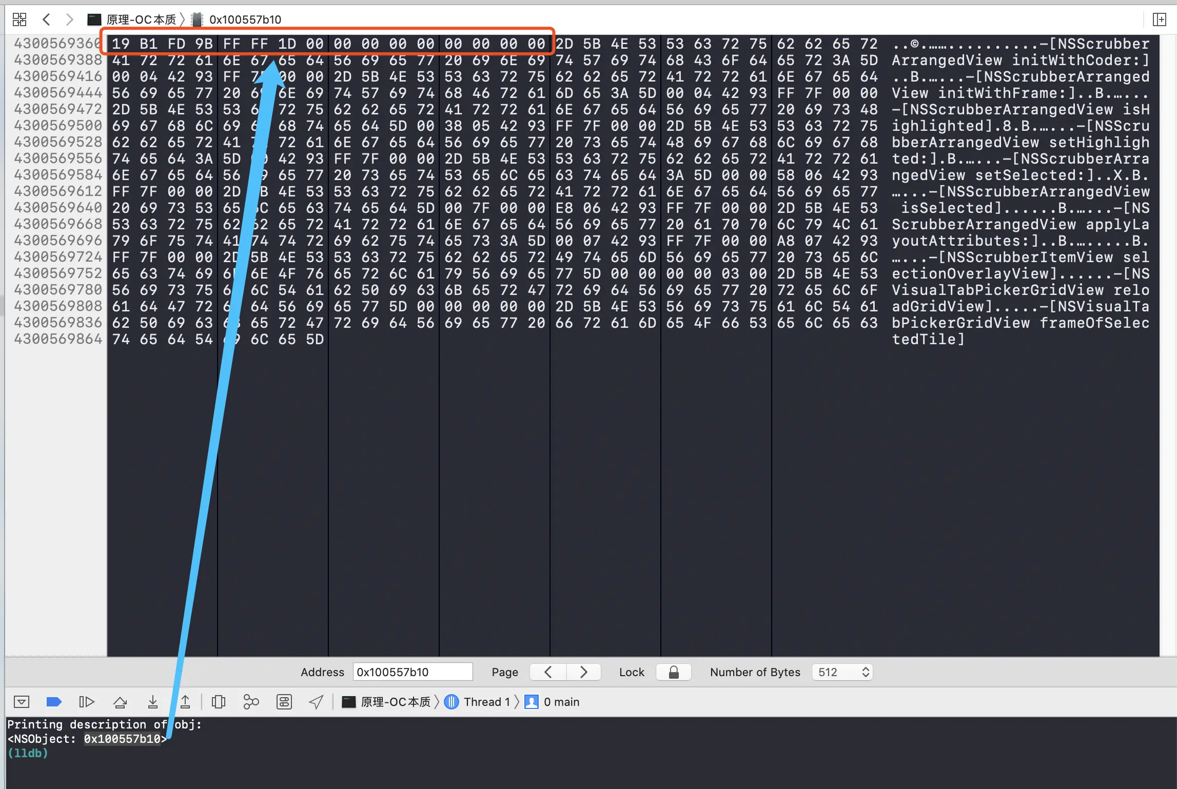 通过XCode的View Memory工具来查看对象的内存