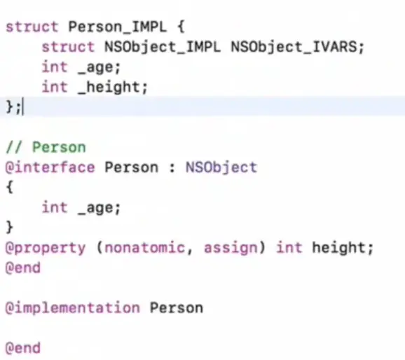 例子: 一个Person类继承自NSObject类,Person类包含3个int类型的成员变量,那么这个创建一个Person类的实例对象,至少需要8bit * 3 = 24bit的内存,但是系统实际上给Person实例对象分配了32bit的内存【个人理解,一个NSObject对象至少占用16bit,但是Person对象至少需要24bit,所以系统给Person实例对象分配了16 * 2 = 32bit的内存空间】