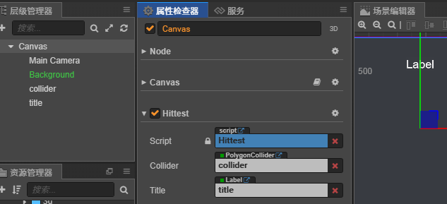 新建Hittest.js,将此自定义组件挂载到Canvas根节点上。