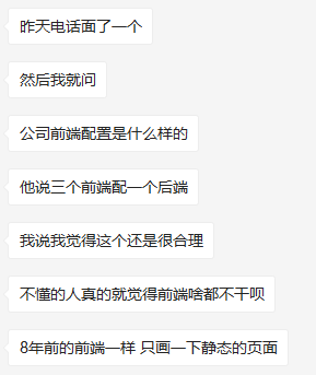 这是我和我哥们这几年对于前端的真实感受。 有时候真实不想再做前端这行了。 感觉完全就是煎熬
