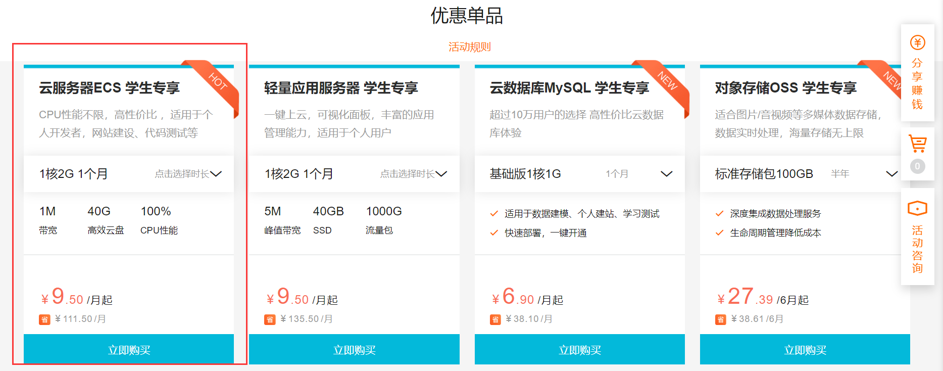 1、先购买阿里云,笔者购买的是学生机,选择操作系统:Ubuntu,16.04 64位(只有这一选项╮(╯▽╰)╭)
