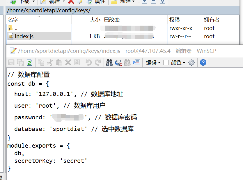在你项目中,修改数据库配置文件,在winscp中直接点击对应文件打开