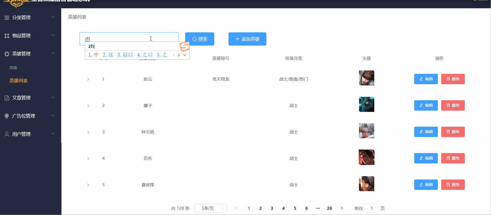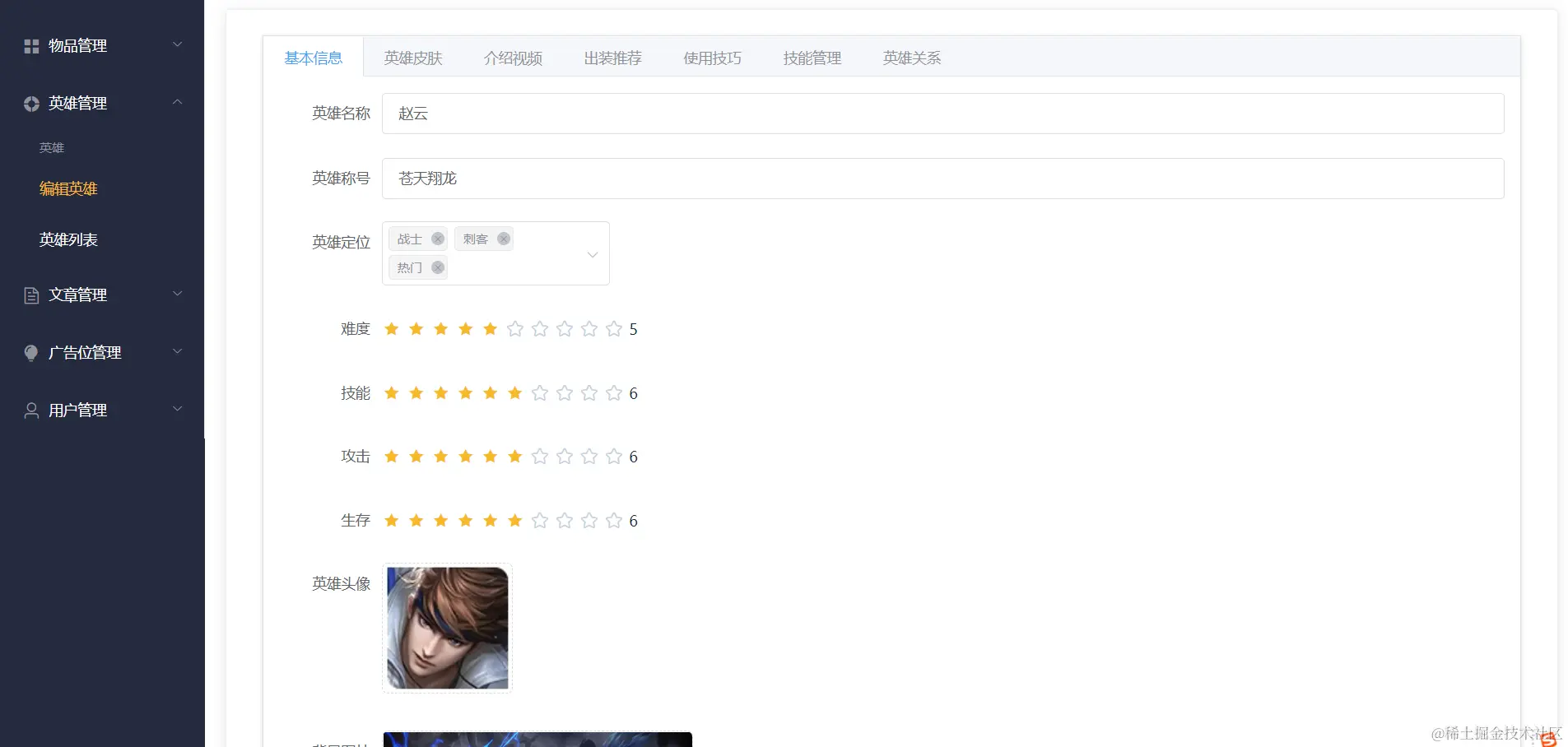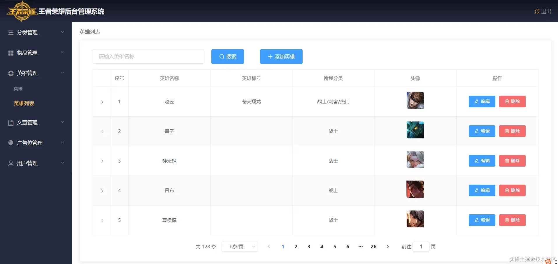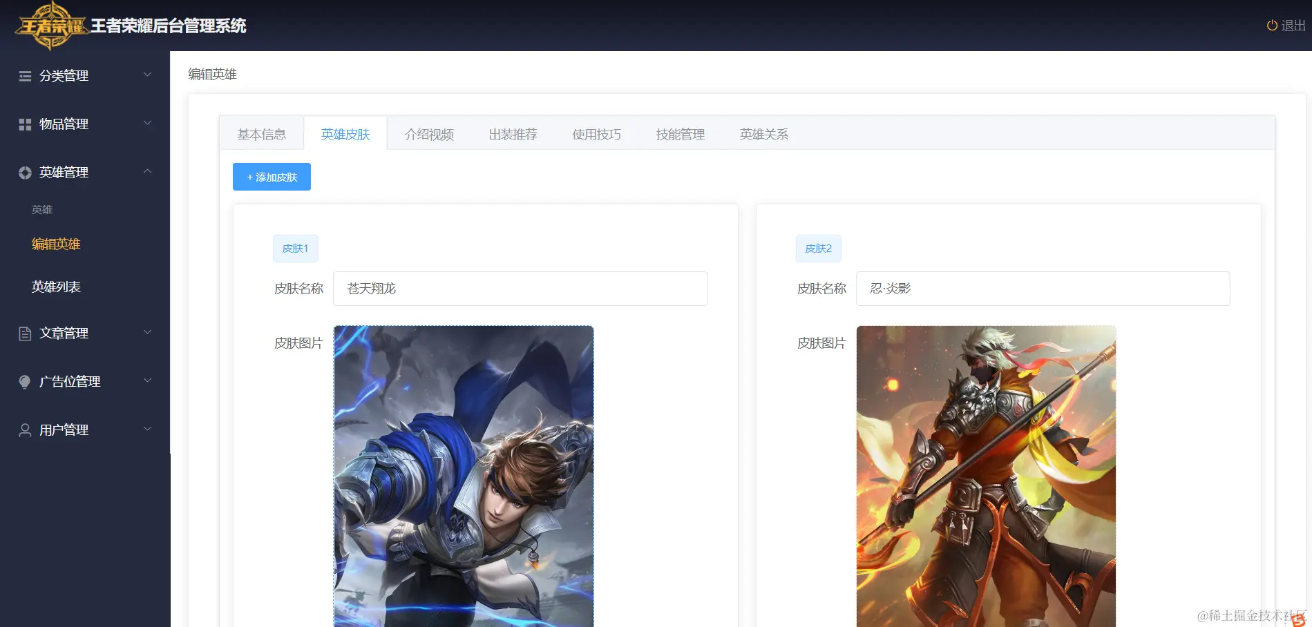 本项目是一个移动端的仿王者荣耀手机端官网和后台管理系统(pc端)的全栈开源项目,基于 vue + nodejs (Express) + ElementUI + mongodb实现。部署在阿里云服务器,本项目使用了最新的Vue全家桶技术栈,后台数据通过node+mongodb搭建。
