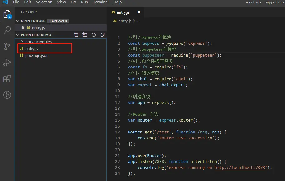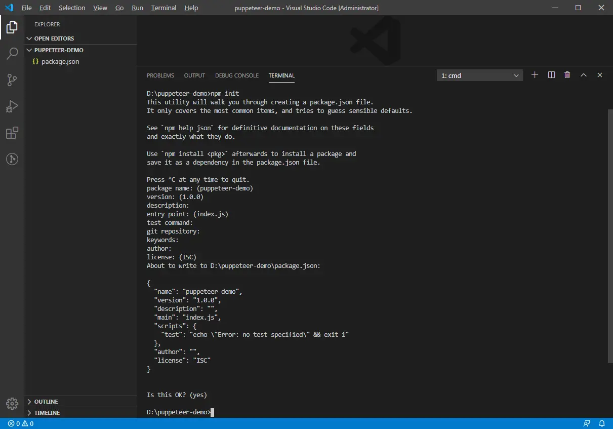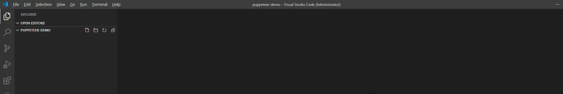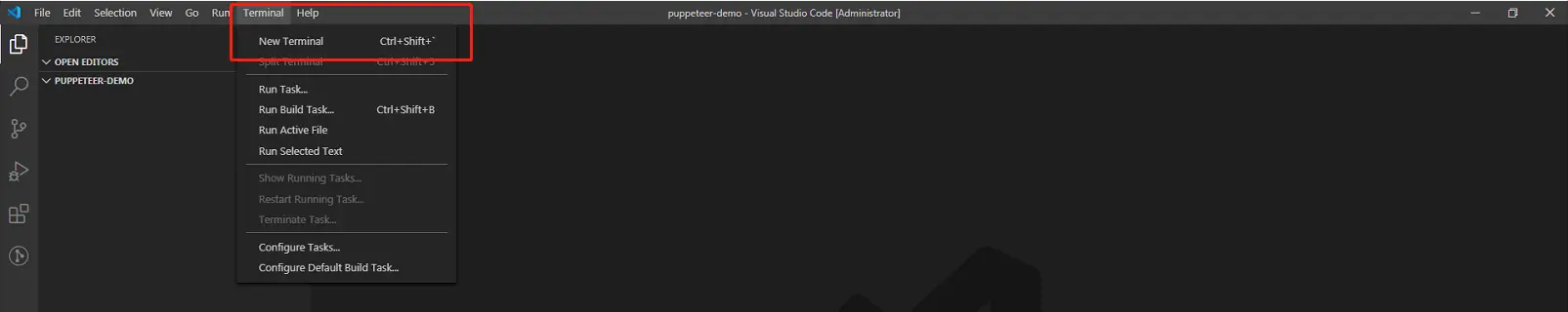 nodejs和VsCode安装完成后,任意位置新建文件夹puppeteer-demo,然后VsCode打开该文件夹