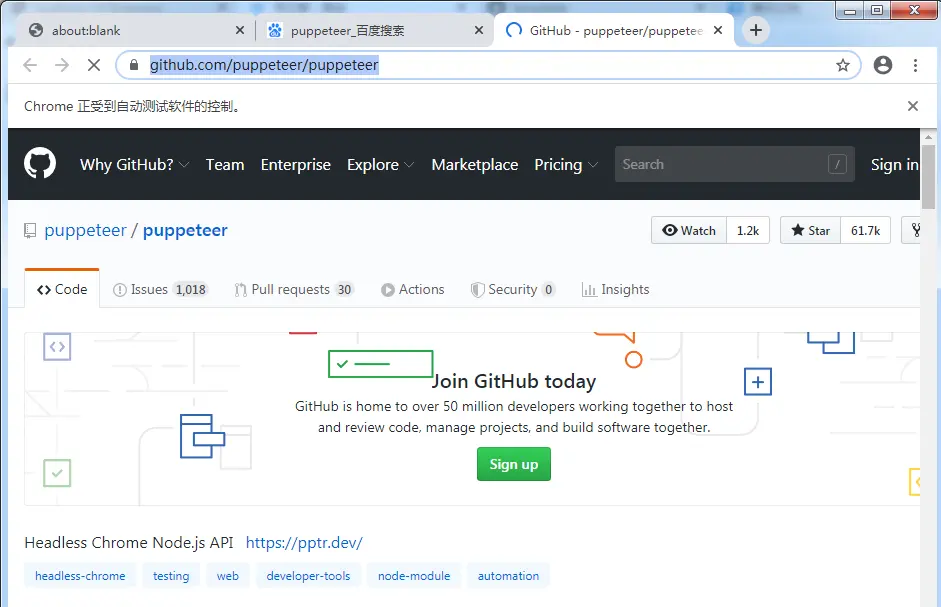 // demo2: 百度搜索“puppeteer”然后跳转到puppeteer GitHub主页