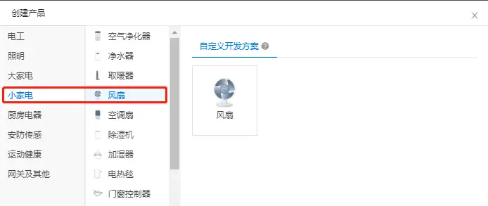 1.选择小家电-风扇-选择标准功能点或创建自定义功能点