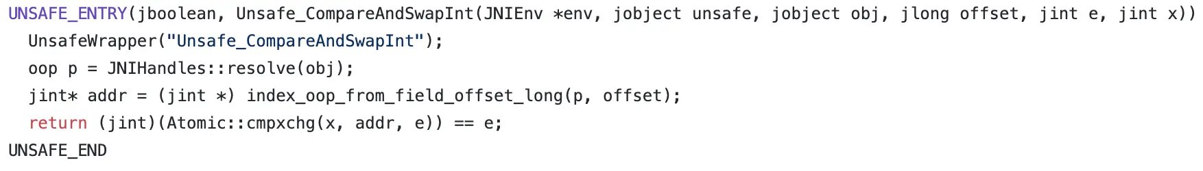 我们来看一下AtomicInteger的compareAndSet方法是如何实现原子操作的