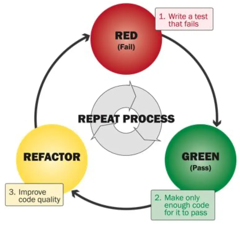 TDD要求先写好单元测试,然后再编写能够通过测试的(可能脏乱差)产品代码,最后再重构产品代码使其更加简洁。