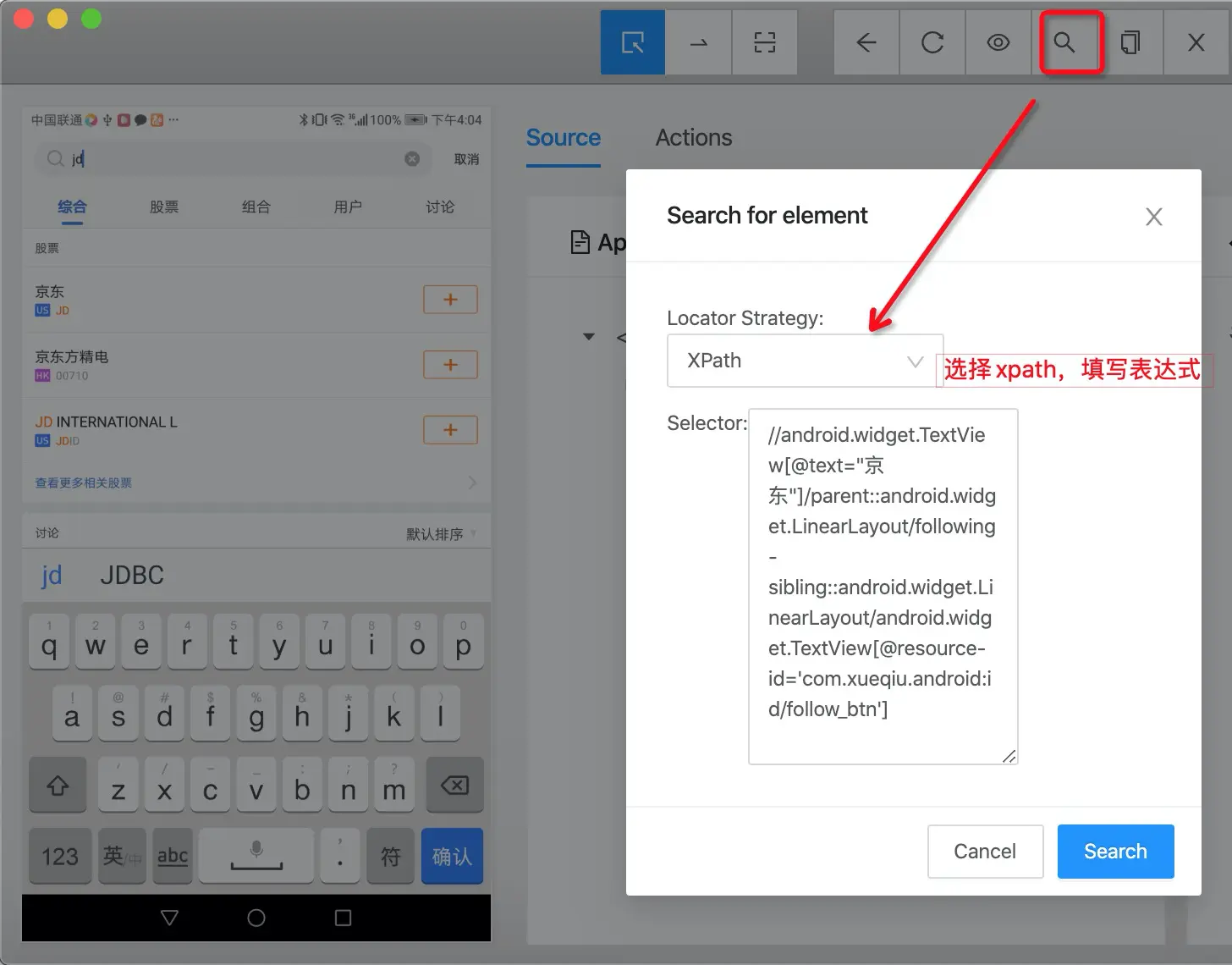 如果是查看界面结构和查询resource-id,可以使用android原生的uiautomatorviewer即可。但考虑到Xpath轴的使用需要验证效果,所以本篇文章使用Appium Desktop作为讲解,并使用其中的「Search for element」方便验证。